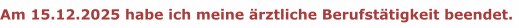 Nach einer Renovierungsphase über den Jahreswechsel wird Frau Dr. Shqipe Muhadri, Fachärztin für Neurologie, ab dem 7.1.2026 am selben Ort weitermachen.Telefonnumme rund Sprechzeiten bleiben gleich. Ich bedanke mich bei meinen Patienten für das Vertrauen während 30 Jahren Tätigkeit in Brackenheim.
